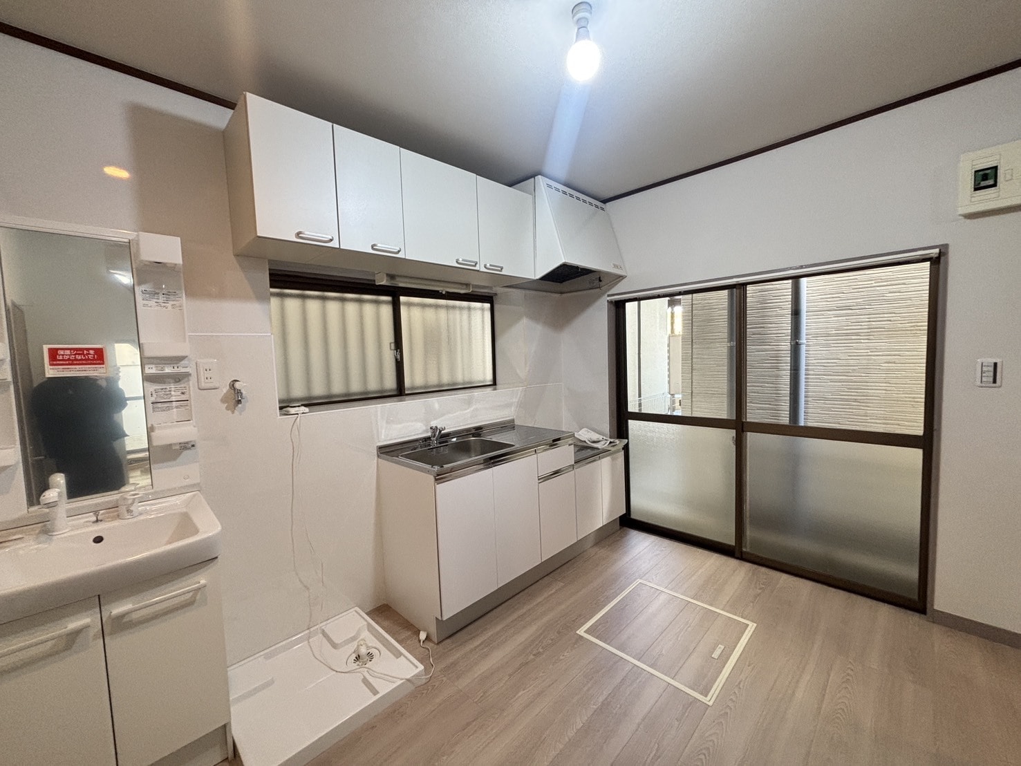 新規リフォーム済みで、トイレ・洗面台・キッチン・洗濯機置場・玄関ドア・リビング収納・カーテンレールが新設です。